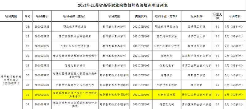 | 我校获批2021年度江苏省高职院校教师国家级和省级培训项目各1项 |