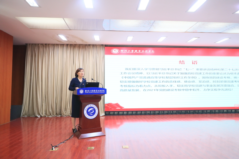 会上,党委副书记李红以“咬定目标不放松,紧盯短板促提升,努力在党的建设考核中争先进位”为题,围绕党的建设考核做主题发言。李红副书记指出,党的建设考核内容上涵盖了政治、思想、组织、作风、纪律、制度六大建设和民主管理、统一战线、校园安全稳定等方面,以考核倒逼党建工作真正融入日常、抓在平常、严在经常,使党建与业务工作同部署、同推进、同落实的融合机制更加落实。她在全面分析2020年度党的建设考核得分、2021年度考核指标体系对比的基础上,提出党的建设工作当前存在的问题及下一步工作打算。