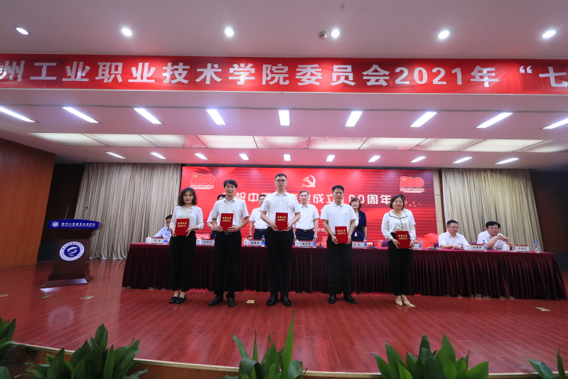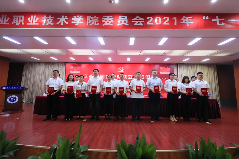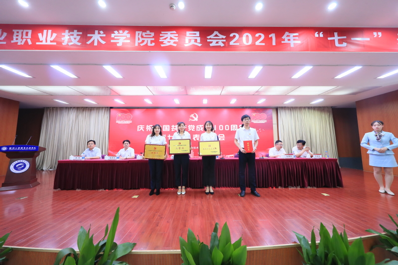 祝木伟书记在大会上讲话。他向受到表彰的先进集体和个人表示热烈祝贺,向奋战在学校各岗位上的共产党员致以节日的问候和崇高的敬意。他指出,从1921年到2021年,从石库门到天安门,中国共产党立志于中华民族千秋伟业,百年恰是风华正茂。我们要从党的百年奋斗史中感悟真理的力量,不断深化对共产党执政规律、社会主义建设规律、人类社会发展规律的认识,用马克思主义的真理光芒照耀我们的前行之路。要始终传承红色基因,赓续红色血脉,用党的奋斗历程和伟大成就鼓舞斗志、指引方向,用党的光荣传统和优良作风坚定信念、凝聚力量,用党的历史经验和实践创造启迪智慧、砥砺品格,继往开来,开拓前进,把革命先烈流血牺牲打下的红色江山守护好、建设好,努力创造不负革命先辈期望、无愧于历史和人民的新业绩。我们学校从中专校到高职校,从省示范到省高水平,再到国家“双高计划”建设单位”的近60年的发展史,让我们更加深刻地认识到:党的建设坚强有力,学校的改革才会有方向、发展才会有力量、和谐才会有保障。 他希望,全体党员牢记习近平总书记的嘱托,学史爱党,铸魂育人。要坚定政治立场,坚持科学理论指导,锤炼“旗帜鲜明讲政治”的政治品格;要深化学思践悟,坚定理想信念,筑牢“革命理想高于天”的政治信念;要强化党建引领,坚持初心使命,展现“以身示范敢为先”的担当魄力;要提振精神状态,继承光荣革命传统,发扬“撸起袖子加油干”的奋斗精神;要全面从严治党,坚持推进自我革命,增强“打铁必须自身硬”的政治本色。 党委副书记李红同志在主持会议时强调,这次大会是庆祝表彰大会,更是奋斗百年路、启航新征程的再动员大会。全体党员要牢记党的性质宗旨,始终坚持立德树人初心,担当为党育人、为国育才使命,为早日实现具备本科职业学校设置条件的“国内一流、海内外有影响的服务区域型高水平高职院校”办学目标而努力奋斗。 纪委书记徐勇同志宣读获得省委教育工委、徐州市委、徐州市教育系统和学校的表彰决定。会上,表彰了荣获“江苏高校特色党支部” “江苏高校2019-2020年度党建工作创新奖” “江苏高校2020年度最佳党日活动优胜奖”等4个省级及7个市级先进集体和优秀个人;表彰了荣获学校“先进党总支”“先进党支部”的先进基层党组织,以及获得优秀党务工作者”“优秀共产党员”的优秀个人。