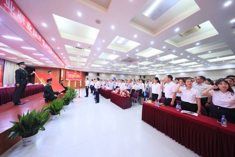 党委书记祝木伟领誓,全体党员重温入党誓词