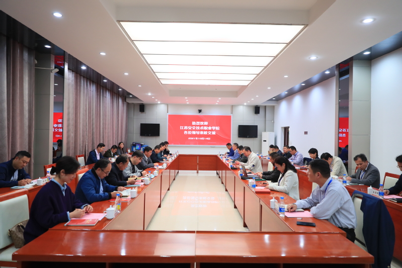 10月14日,江苏安全技术职业学院院长徐建春一行到我校交流。我校党委书记祝木伟、副院长鲍桂楠出席会议,相关部门负责人与会交流。会议由祝木伟书记主持。 会上,祝木伟书记代表学校对江苏安全技术职业学院到访交流表示热烈欢迎,并介绍了我校在推进高质量发展、国家“双高计划”建设、职业本科创建等工作中的特色做法和创新举措。鲍桂楠副院长从学校概况、实践探索、特色创新、未来工作思路等方面介绍了我校的办学和事业发展情况。 徐建春院长对我校在长期办学治校中积累的成功经验、取得的突出成绩和为区域经济社会发展做出的贡献给予高度评价,希望进一步加强两校交流与合作,共同推动学校高质量发展。 会后,两校相关部门负责人就具体工作做了对口交流。