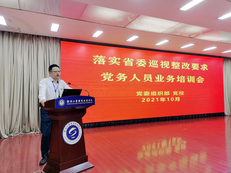 为落实省委巡视整改要求,进一步提升党务人员业务能力水平,10月15日,我校在图书馆报告厅举办党务人员业务能力提升专题培训,重点围绕党员发展、“三会一课”、组织生活会等工作进行培训指导。学校全体党支部书记、党支部副书记、党务秘书、组织员参加培训;培训由校党委委员、组织统战部部长朱伟军主持。 朱伟军部长在主持时,指出了当前党务工作中存在的问题,对参训人员提出三点希望和要求。一是进一步加强制度文件的学习,了解掌握工作内容、工作标准和要求;二是进一步加强制度文件的落实,严格按照程序、流程开展工作,做到标准化和规范化;三是进一步加强党建工作的研究,创新党建活动的内容和形式,增强党组织的凝聚力和战斗力,通过党建引领高质量发展。 培训会上,党委组织部副部长陈令霞以《发展党员程序及重点》为题,解读了发展党员的工作方针、原则、重点、环节、阶段等问题,指出了当前发展党员工作中的常见问题,特别强调了党员发展环节的规范性和党员材料的建档与归档。机关党总支副书记、党校副校长陈竹以《高校党支部的组织生活》为题,具体阐述了“三会一课”、主题党日活动、组织生活会、民主评议党员、谈心谈话等五个制度的内容形式、操作程序、重点要点、注意事项等问题,强调要严格落实上级和学校制度文件,规范各项工作的程序和流程。 下一步,党委组织部、党校将持续开展党务人员业务能力提升系列培训,不断提高学校党建工作水平和基层党组织组织力,为引领学校高质量发展提供坚实保障。