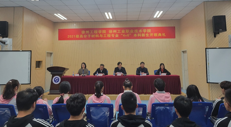 11月9日下午,2021级高分子材料与工程专业“4+0”本科班开班典礼在我校教师发展中心会议中心隆重举行。徐州工程学院教务处处长邵晓根、材料与化学工程学院院长堵锡华和副院长陈艳应邀参加了开班典礼。我校副院长张芳儒出席典礼并讲话,材料工程学院院长王艳秋、副书记周树会、副院长丛后罗、教务处副处长宋帅帅、专业负责人刘琼琼、班主任臧亚南、教学秘书杨昭等老师等相关领导和老师参加了开班典礼。开班典礼由王艳秋院长主持。 开班典礼上,张芳儒副院长介绍了我校高分子材料与工程专业“4+0”本科项目的进展情况,肯定了联合培养“4+0”本科项目为学院完善现代职教体系、建设职教本科进行探索取得的成绩,提出要着力在“4+0”本科生培养中融入徐州工业职业技术学院特色。张院长对本科新生要打基础、强素质和精技能三个要求,并勉励同学们奋发图强,成为大国工匠,实现自己的抱负和人生价值,成长为有知识有品德有作为的社会主义建设者和接班人。 徐州工程学院教务处处长邵晓根介绍了徐州工程学院的情况和2021级4+0本科班学生教育教学要求,殷切地希望同学们制定规划,明确目标,严谨治学,学业有成。 姚心怡同学代表2021级新生发言,表达了拥有徐州工程学院和徐州工业职业技术学院两个母校幸运和骄傲,表示在今后的学习过程中将努力学习,严格要求自己,以优异的成绩向学校和老师交上满意的答卷,不负青春韶华。2020级“4+0”本科班学生崔雅茹同学介绍了自己一年来学习、生活、竞赛等方面取得的成绩,与学弟学妹们分享了自己学习、工作上的心得和经验。 王艳秋院长号召同学们不辜负领导老师们的殷殷嘱托和期望,努力学习,不负韶华。 开班典礼前,双方在材料工程学院B05-306会议室召开工作研讨会。专业带头人刘琼琼教授以“我校办学特色在人才培养方案的融入”为题与徐州工程学院专家进行沟通对接,两校领导、老师在教学管理、学生管理、人才培养方案执行过程中我校办学特色的融入和体现、教育教学资源共建共享等方面深入沟通交流并达成共识。