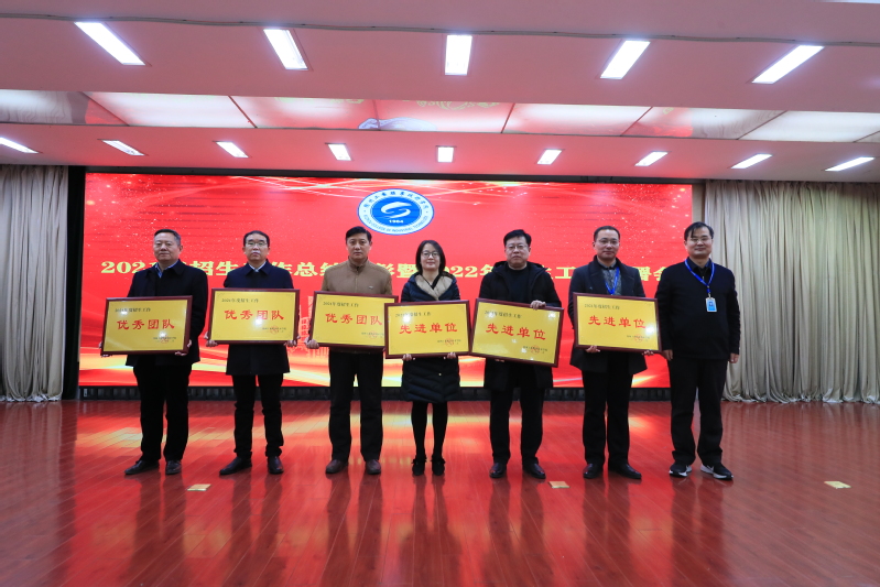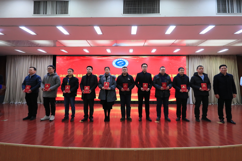 大会对2021年度招生工作先进单位、优秀团队、先进个人进行表彰。纪委书记徐勇宣读表彰文件,校领导为先进单位和先进个人颁奖。