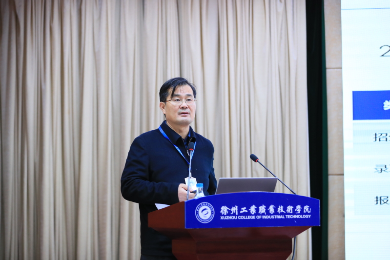 副院长张芳儒首先作2021年招生工作报告。他指出,2021年我校招生工作稳中有进,录取人数位列江苏省高水平高职院校前列,报到率再创新高,超额完成年初制定的目标,主要得益于五个方面的有力举措:一是坚持省内外并重逐步向省内转移;二是始终注重招生计划精准投放;三是坚持多主体协同招生,充分发挥队伍主体作用;四是高度重视核心、重点生源基地建设;五是采用“分数优先,遵循志愿”的录取原则,适度调整招生政策。他对2022年招生工作进行部署时表示,明年招生工作将面临三大挑战,一是生源竞争形势依然严峻;二是考生文理科比例不均衡;三是新高考改革持续带来冲击。他强调,要在抓好省内招生,稳定省外招生;进一步提升专业吸引力;稳步推进现代职教体系项目实施;招生政策稳中有变等四个方面下功夫、求实效,凝心聚力完成稳定招生规模、提升生源质量、优化规模结构的目标任务。