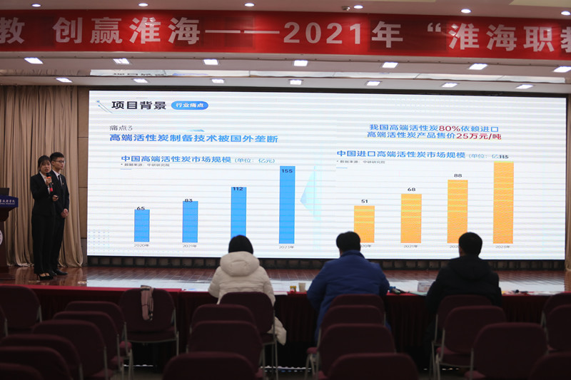 12月30日,由徐州市教育局主办、徐州工业职业技术学院承办的2021年“淮海职教杯”创业大赛在我校隆重举行,教育局副局长李清、我校党委副书记李红、教育局职教处处长李乐、学生工作处处长阮浩出席活动并观摩了比赛。