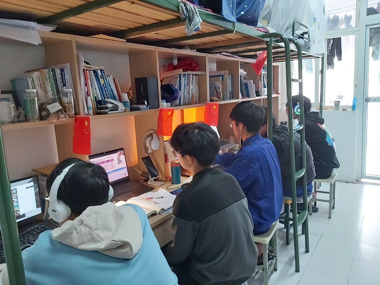 “四方协同”强化管理。教学团队、工作专班、班干班委、宿舍长四方力量协同,强化线上教学管理。健全课程教学团队,发挥教师集体智慧,通过制定线上教学实施方案、遴选线上教学平台、整合线上教学资源等工作全方位做好线上教学准备;课上教师调整教学策略,采用“直播平台+教学平台+资源平台”实施教学,借助虚拟仿真系统“以虚助实”,注重讲练结合,加强师生互动,主导知识、技能、素质培养的有效落实,提高线上课堂教学对学生的黏性。组建校院两级宿舍教学管理专班,轮流全封闭在校值班值守,以宿舍为阵地做到一天一巡查,院级专班进行全天课程检查,校级专班进行专项巡查和重点抽查,发现问题即知即改,做到问题不隔天。组建宿舍学生网格学习互助小组,以宿舍为单元,充分发挥班干班委、宿舍长教学“助理”功能,形成1个学习大组,2-3人形成2个学习小组;小组负责人课前组织好小组成员做好学习准备,成员之间做到相互监督、互帮互助,形成学习共同体。