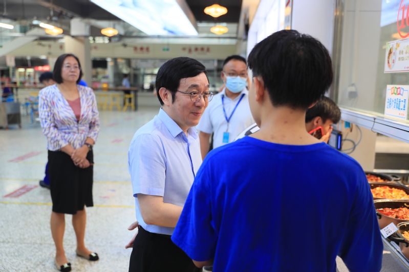 6月23日上午,省委教育工委委员,省教育厅党组成员、机关党委书记汪国培一行来我校调研。党委书记祝木伟、院长刘莹陪同调研。 汪国培一行先后来到学校党建智慧中心、九里书院、文化长廊、大学生心理健康教育与咨询中心、学生食堂等进行实地察看。校领导向汪国培一行介绍了学校事业发展情况,校园安全稳定、常态化疫情防控和学生就业情况,表示将继续严格落实省市和属地疫情防控工作要求,切实做好师生安全教育与管理,全力维护校园安全与和谐稳定,以实际行动迎接党的二十大胜利召开。 汪国培对我校统筹抓好疫情防控、校园安全稳定、师生思想政治教育、大学生就业等工作取得的成效和学校事业高质量发展主要做法与成绩给予充分肯定。他指出,高校安全稳定工作是各项工作的重中之重,学校要进一步提高政治站位,从严从紧抓好常态化疫情防控工作,加强学生日常思想政治教育,丰富学生校园生活,切实维护师生身心健康和校园安全稳定。 省教育厅监督与审计处、发展规划处、机关党委及徐州市委教育工委、教育局相关负责同志,我校全体校领导及相关部门负责同志参加活动。