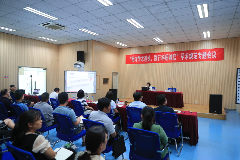 6月30日下午,学校在教师发展中心召开了学术规范专题会议。院长刘莹出席会议,教师代表参加现场会议,全体教师与学生代表参加线上会议,会议由科技处处长徐云慧主持。 会上,刘莹院长作了“打造风清气正的学术环境”主题讲座,要求学校“无禁区、全覆盖、零容忍”,发现一起,查处一起,绝不姑息,要大力弘扬科学家精神,严肃处理学术不端的行为,营造导向鲜明、风清气正的科研生态,创造宁静、干净的环境,呵护“初心”,创新机制体制建设,不让科研人员发出“我本将心向明月,奈何明月照沟渠”的叹息,才能让学界更长远地“免疫”浮躁。刘院长在教师科研的坚持与情怀方面提出四点要求:一要在迷茫中明确目标,二要在孤独中执着追求,三要在求索中实现价值,四要在纷扰中坚持初心。刘院长鼓励年轻教师:“学道须当猛烈,始终确守初心,纤毫物欲不相侵”。多积累,注重学习前沿热点知识,能够坚持积累资料,厚积薄发,善于积累资料的人,更有利于开展教学科研活动;勤实践,要在实践中学习、探索、总结、提高,通过认真实践,走出一条符合科研特点与规律的道路;重合作,加强与同事间的交流合作,营造互相激励、互相支持、互相帮助、互相交流的科研氛围,用集体智慧解决困难。 徐云慧处长作了“恪守学术道德,践行科研诚信”主题讲座,从学术规范、典型案例、应知应会等方面强调了科研诚信的重要性。